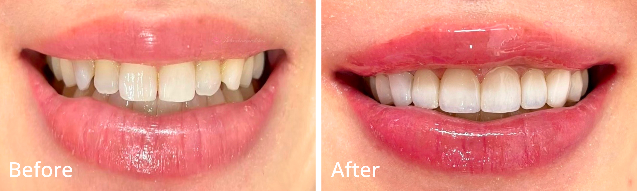 ダイヤモンドラミネートヴィーナスで歯列の改善、歯の色を白く、理想のデザインにお仕上げさせていただきました。